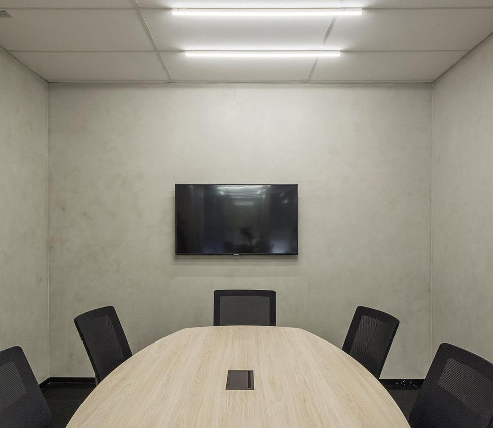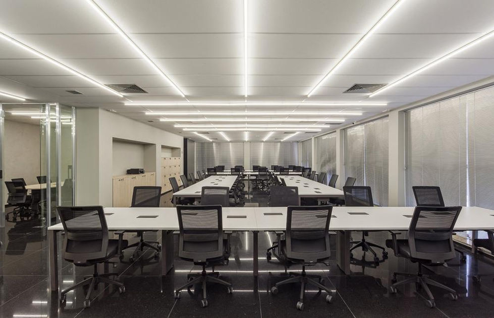 Além do condicionamento acústico do open space, o projeto também contemplou o desempenho de isolamento entre os ambientes. A especificação dos sistemas leves em drywall foi cuidadosamente definida para garantir a separação acústica adequada entre salas, enquanto as divisórias em vidro foram especialmente projetadas para manter a integração visual do espaço sem abrir mão da privacidade sonora. O resultado é um ambiente corporativo mais equilibrado, que responde à dinâmica intensa de uso com conforto acústico, funcionalidade e qualidade espacial.